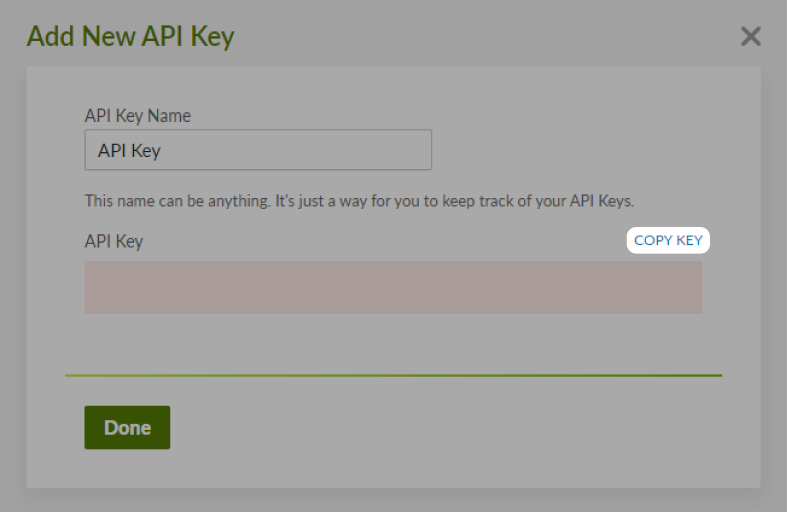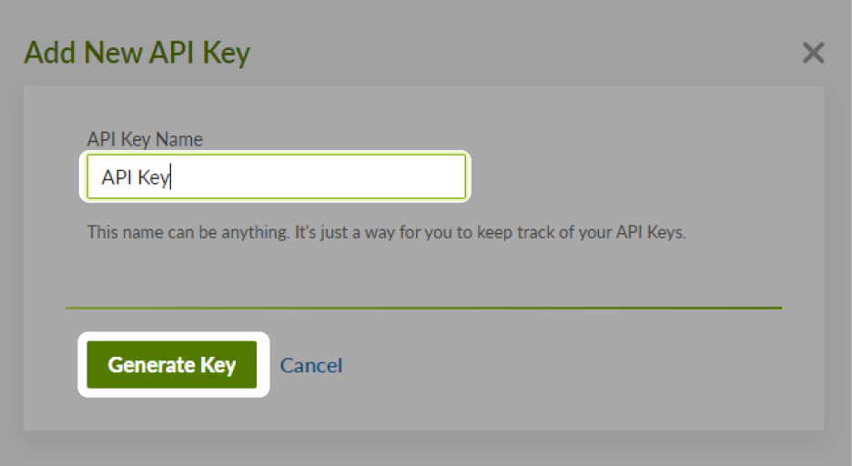 - Input an API Key Name, and then click Generate Key.